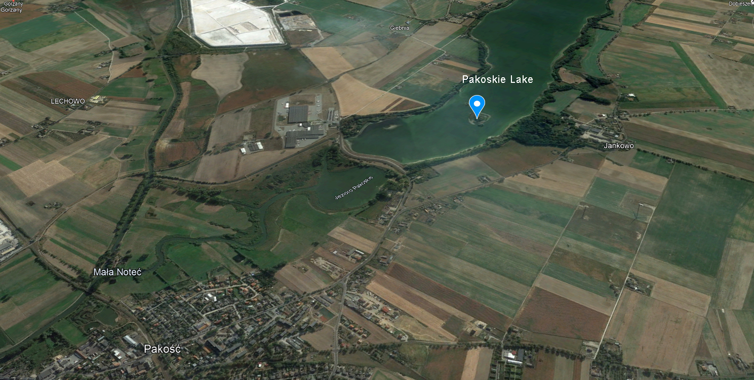 Pakoskie Lake: 52°47'04.1"N 18°05'05.6"E, natural post-glacial lake. | |||