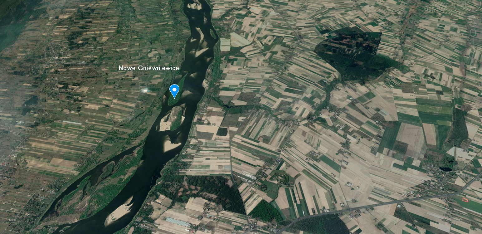 Nowe Gniewniewice: 52°25'31.5"N 20°32'33.7"E, sand island in river Vistula, between Włocławek and Warszawa. | |||