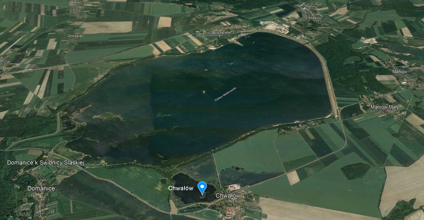 Chwałów: 50°56'20.6"N 16°36'53.6"E, fishpond (considered part of the Mietków Reservoir, see picture). | |||