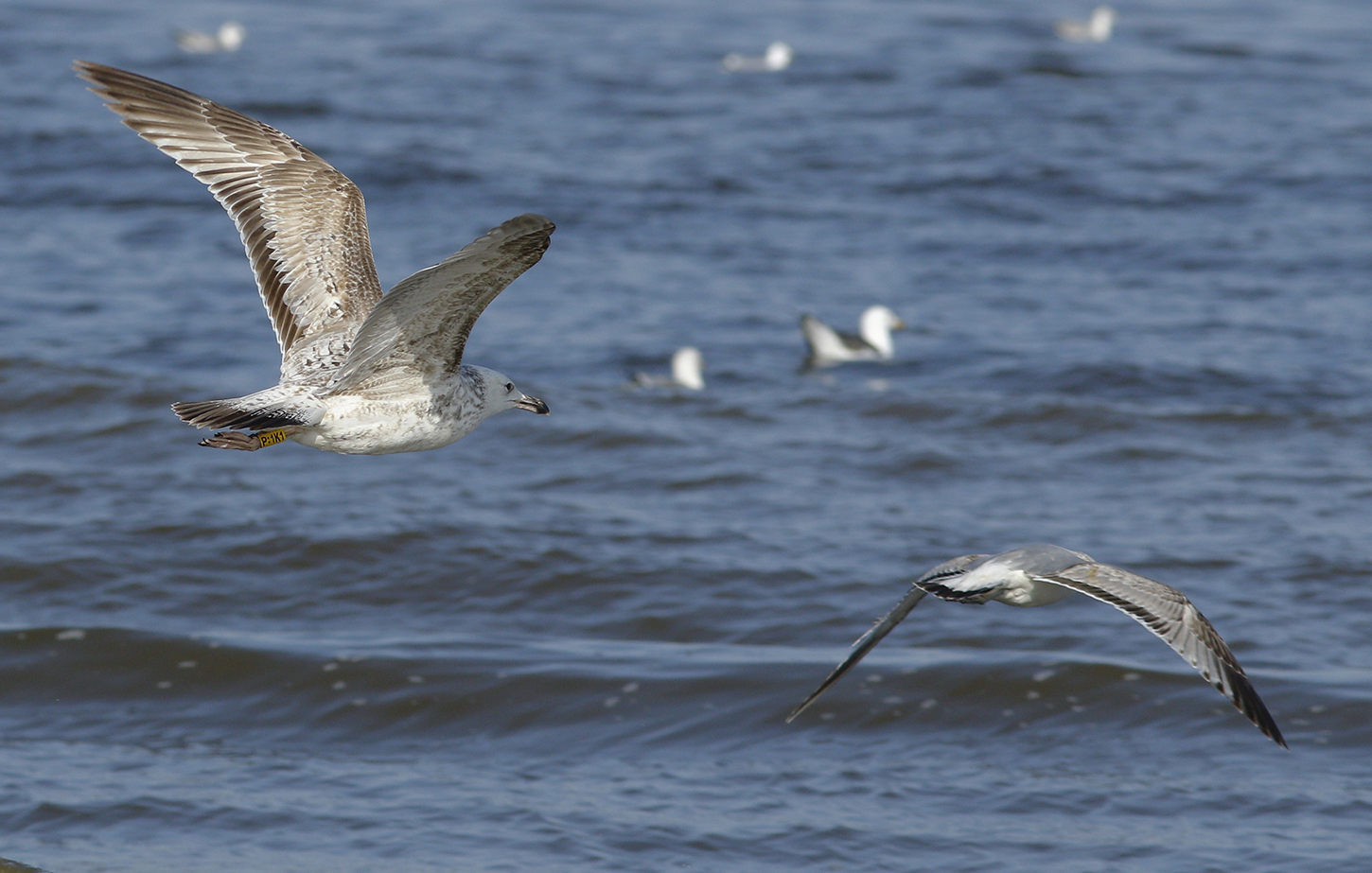 Metal ring DN39511 and yellow P:1K1, ringed as pullus in a mixed colony dominated by Caspian Gull (Larus cachinnans kolonia) on May 25 2019 at ZB. KOZIELNO, PACZKÓW - POLAND (DOLNOŚLĄSKIE), by ringers Jakub Szymczak, Paweł Grochowski & Małgorzata Pietkiewicz.