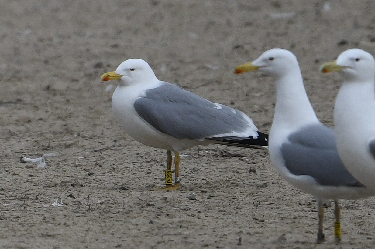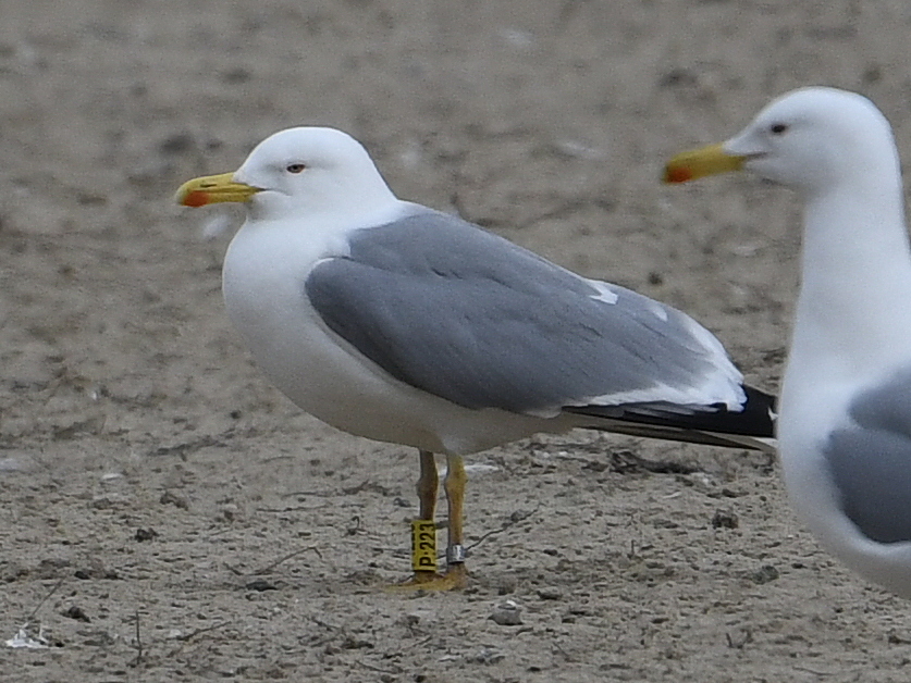 Caspian Gull cachinnans P:223 adult, April 08 2021, Kępa Nadbrzeska, Poland. Picture: Marcin Sidelnik.
