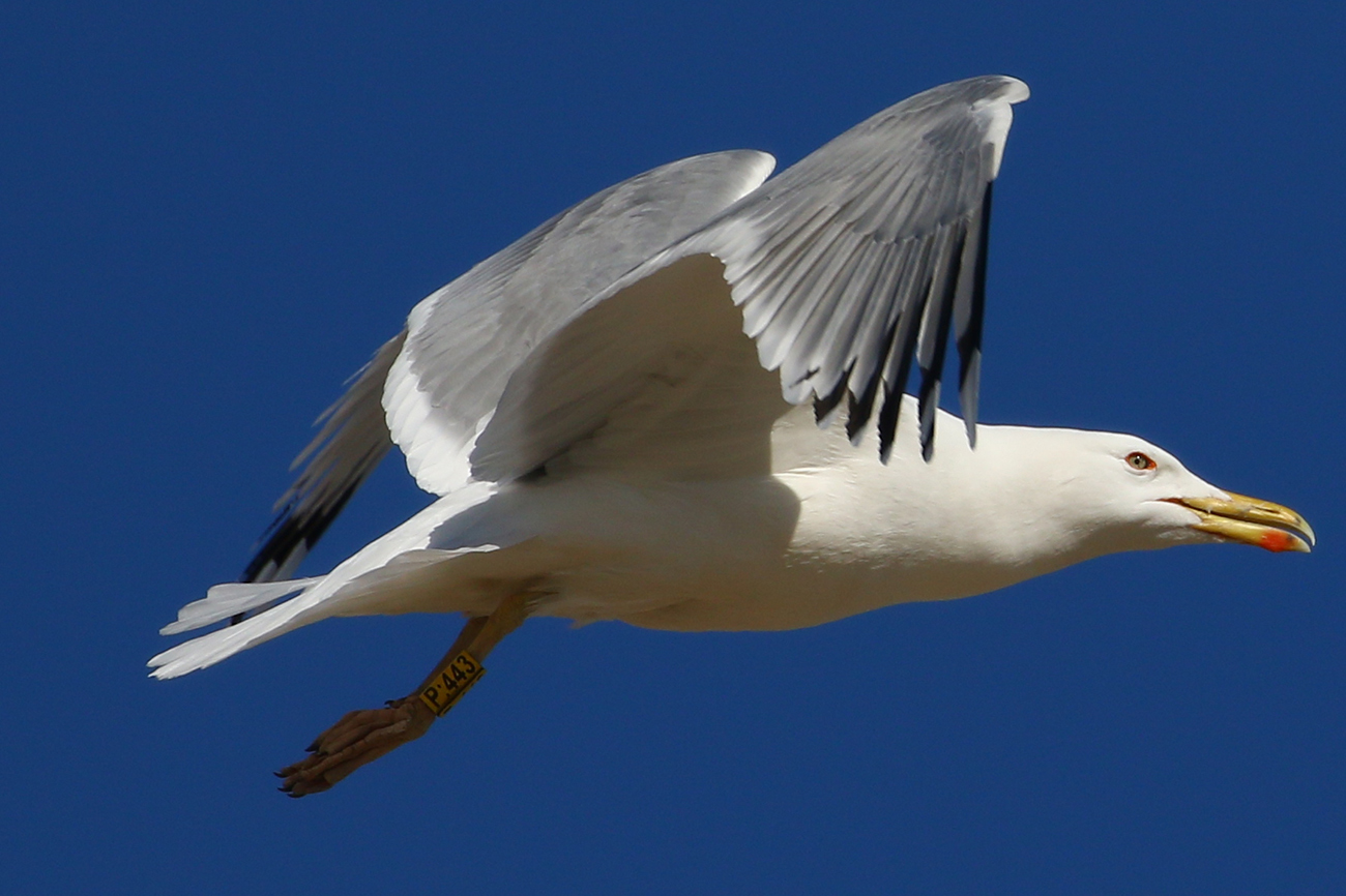 Caspian Gull cachinnans P:443 adult, April 11 2020, Kępa Nadbrzeska, Poland. Picture: Marcin Sidelnik.
