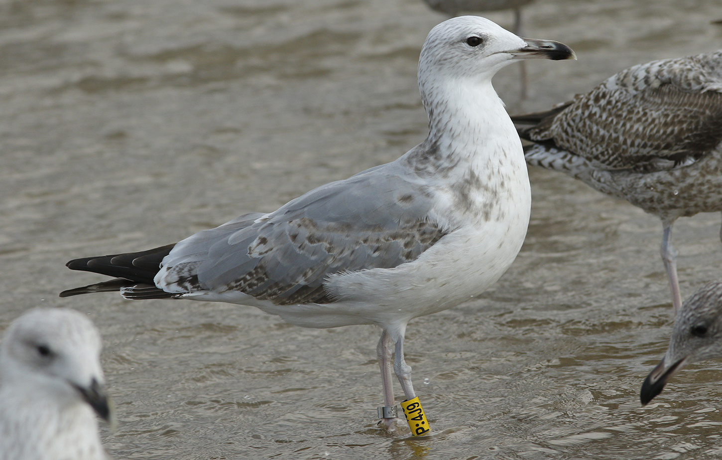 Ringed in Poland: metal ring DN 36749 and y[P:4J9], ringed as pullus on May 19 2019 in Caspian Gull colony ("Larus cachinnans kolonia") at ŻWIROWNIA ZAKOLE A, JANKOWICE, ZATOR POLAND, by ringers Jacek Betleja & Mateusz Ledwoń.