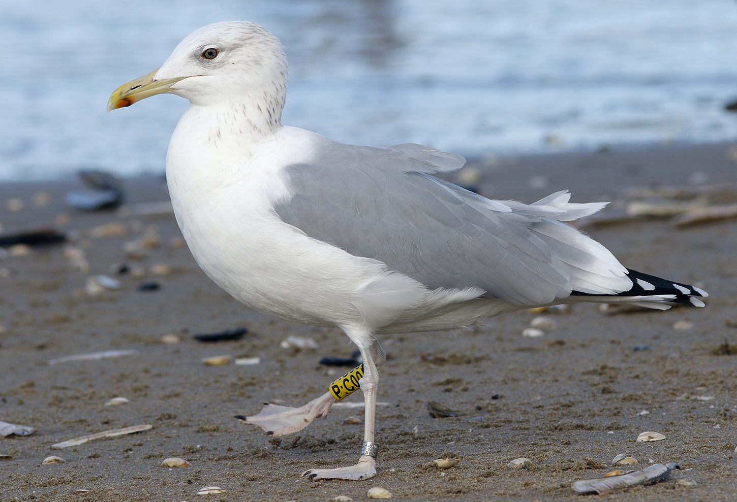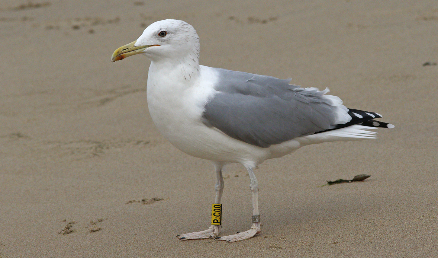 Caspian Gull cachinnans P:C00 4CY, September & October 2020, IJmuiden & Langevelderslag strand, the Netherlands. Picture: Mars Muusse.