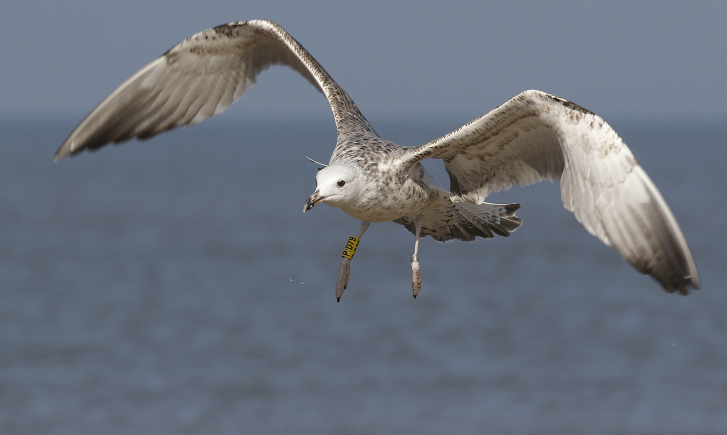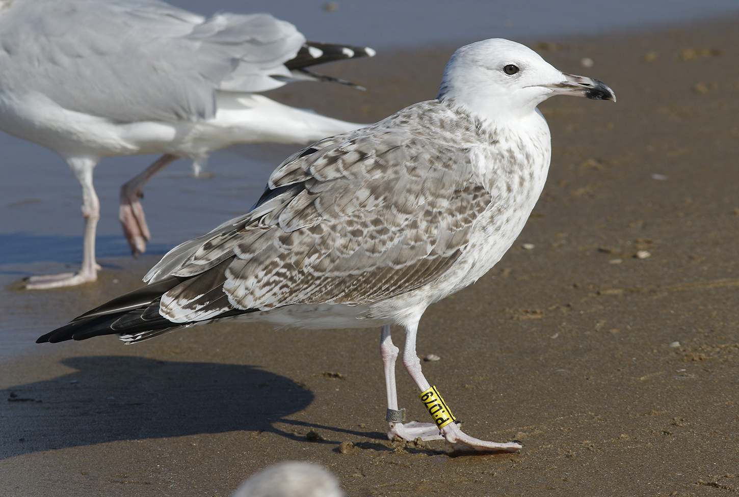 Caspian Gull cachinnans P:D79 2CY, October 10 2018, Katwijk, the Netherlands. Picture: Mars Muusse.YEL P:D79 and metal PLG DN 34979 ringed as pullus on 11/06/2017 in a mixed "Caspian Gull colony - Larus cachinnans kolonia" at ZB. MIETKOWSKI, DOMANICE 1 KM N, MIETKÓW POLAND (DOLNOŚLĄSKIE) ODRA, by ringer Małgorzata Pietkiewicz. Recoveries: |