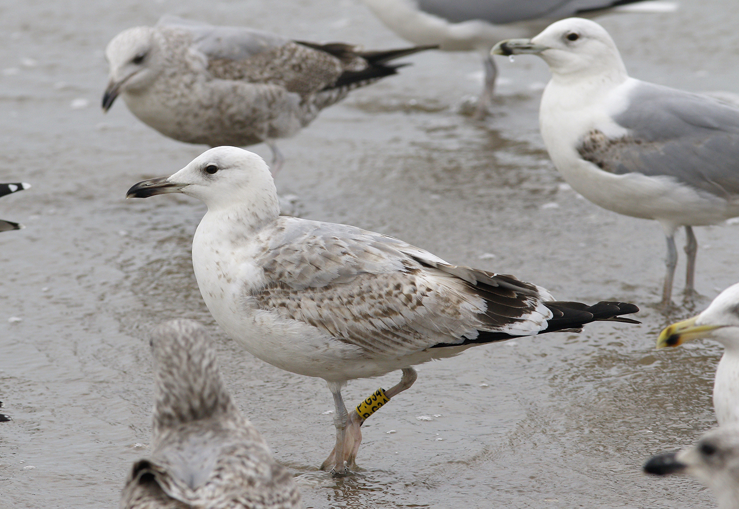 Caspian Gull cachinnans P:G34 2CY, February 21 2020, Langevelderslag beach, the Netherlands. Picture: Mars Muusse.