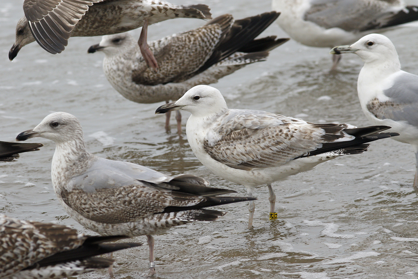 below: With metal ringed Danish 3CY Herring Gull in front and unringed 4CY cachinnans in background.
