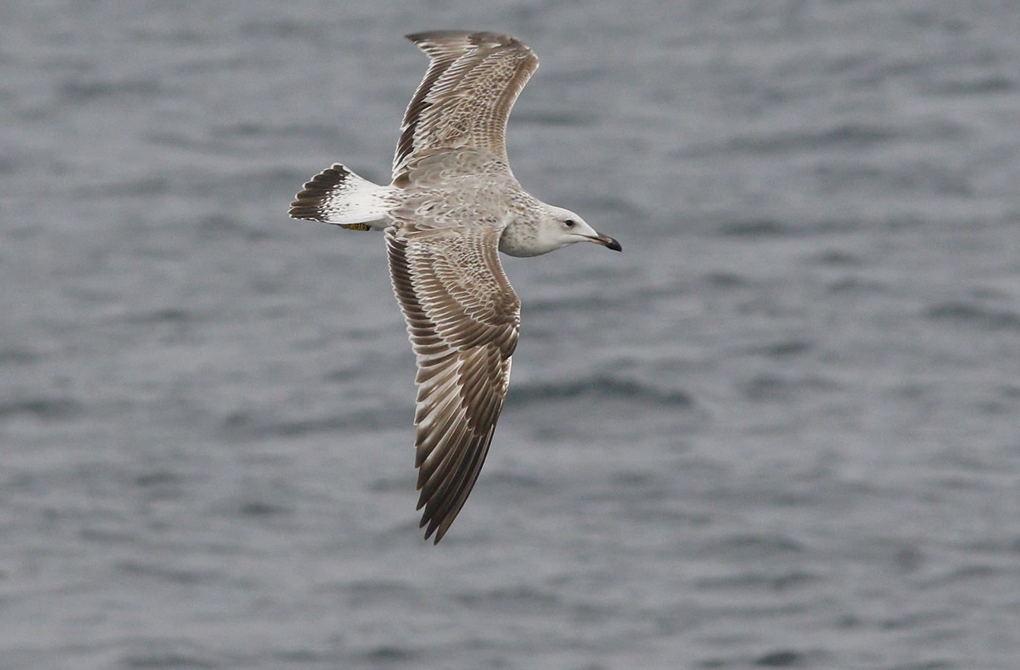 below: Caspian Gull cachinnans P:G76 1CY, October 21 2018, The Hague - offshore, the Netherlands. Picture: Mars Muusse.