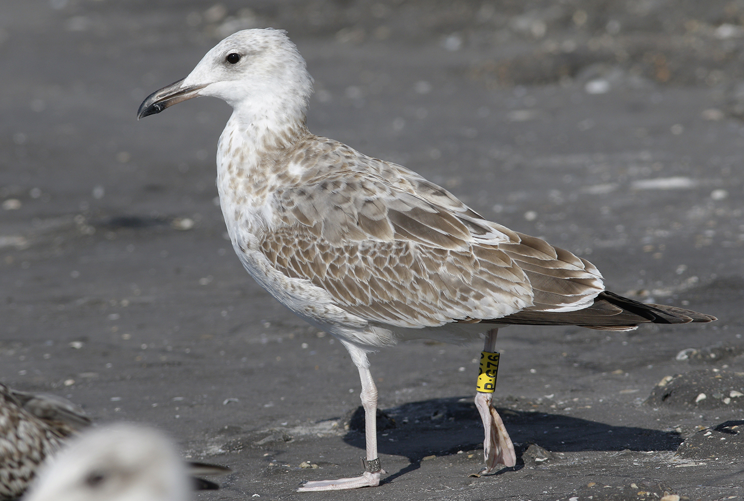 below: Caspian Gull cachinnans P:G76 1CY, September 25 2018, Westkapelle, the Netherlands. Picture: Mars Muusse.