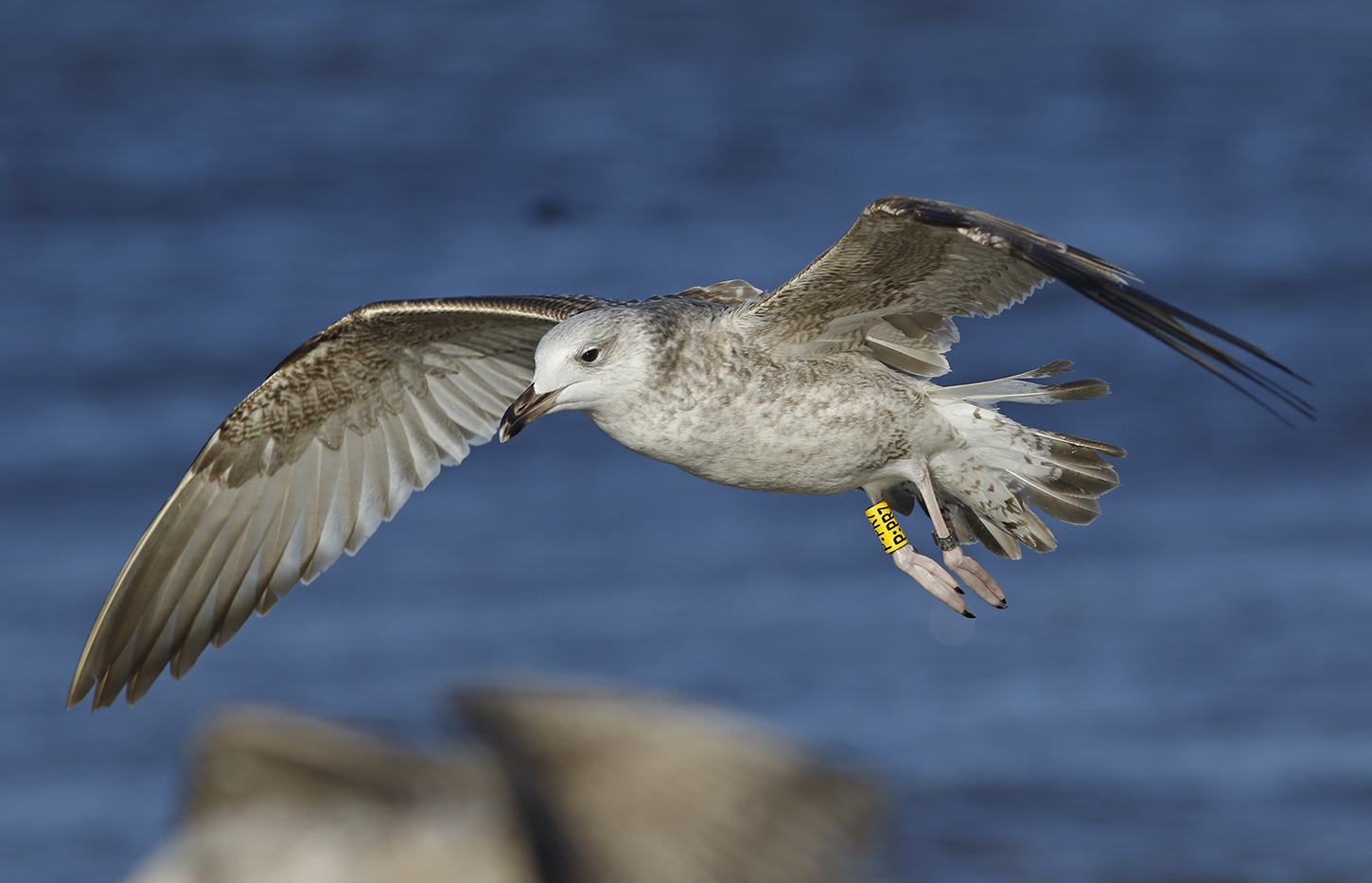 Caspian Gull cachinnans P:PR7 2CY, January 22 2021, Katwijk beach, the Netherlands. Picture: Mars Muusse.
