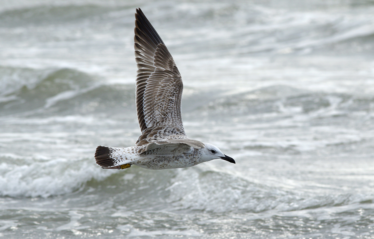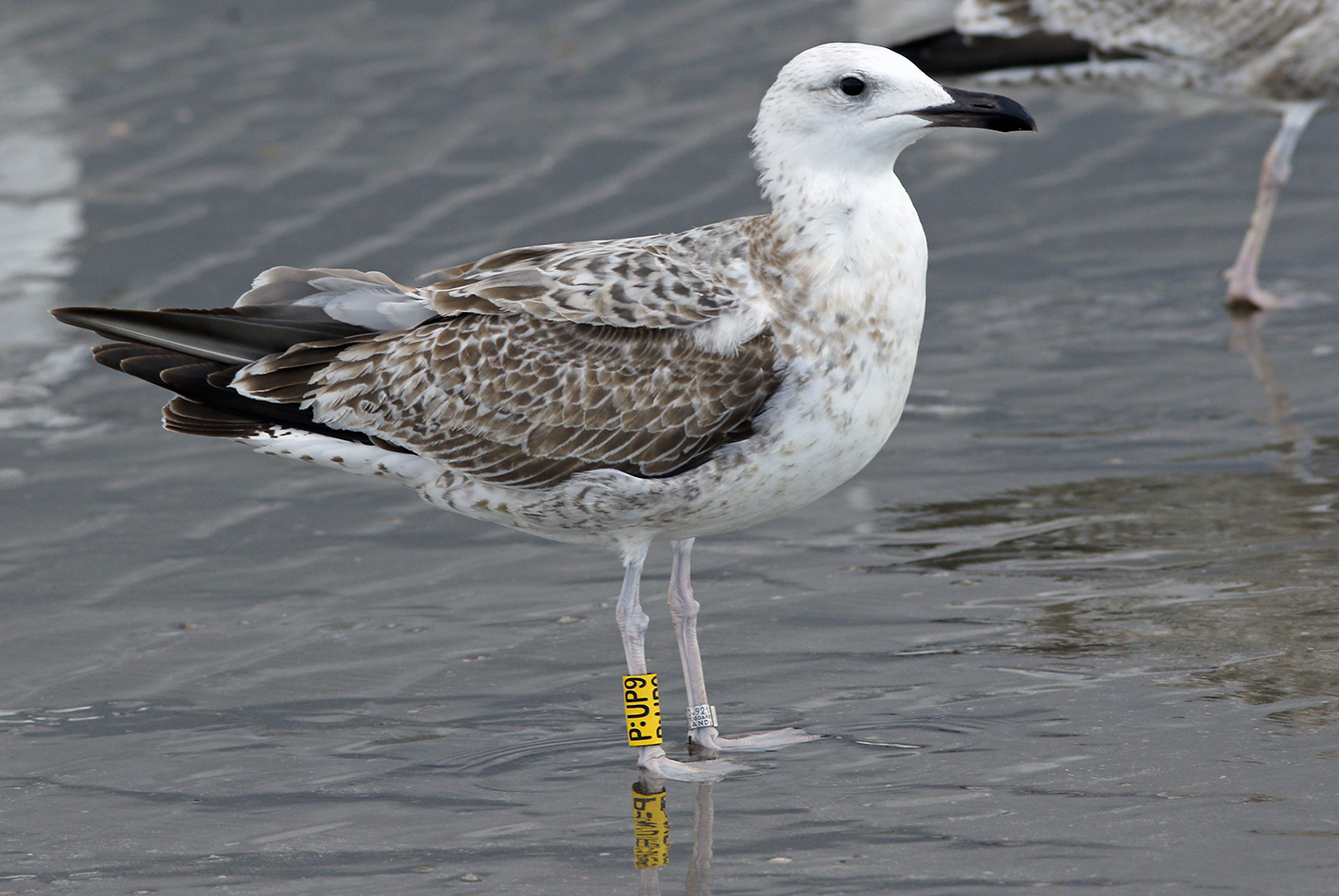 Caspian Gull cachinnans P:UP9 1CY, October 10 2020, IJmuiden beach, the Netherlands. Picture: Mars Muusse.Metal ring PLG DN40921 and colour ring yellow P:UP9, ringed as pullus in a Caspian Gull colony "Larus cachinnans kolonia" on May 16 2020 at WYSPA NA RZ. WISŁA, KĘPA ADBRZESKA, OTWOCK, POLAND (MAZOWIECKIE), by ringers Dolina Środkowej Wisły, Marcin Sidelnik & Hubert Mateuszczyk. Recoveries: |