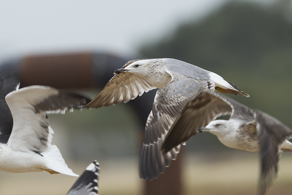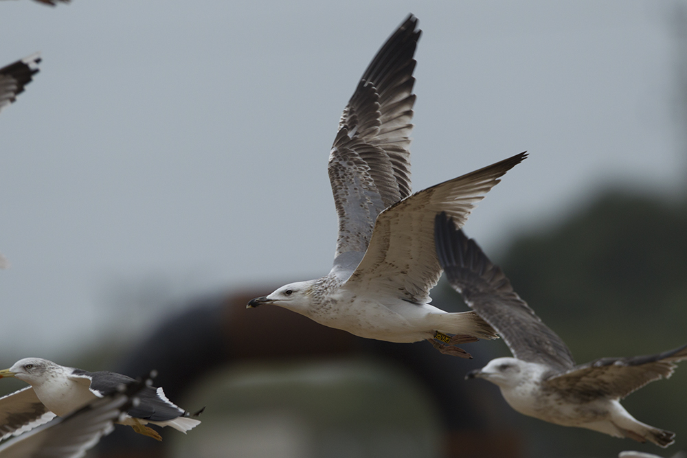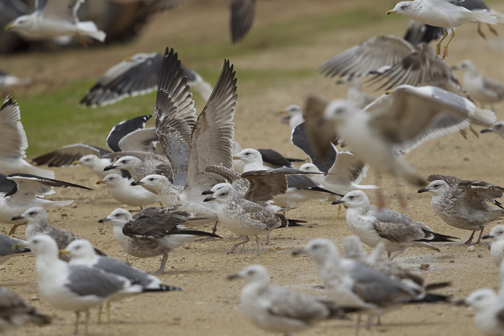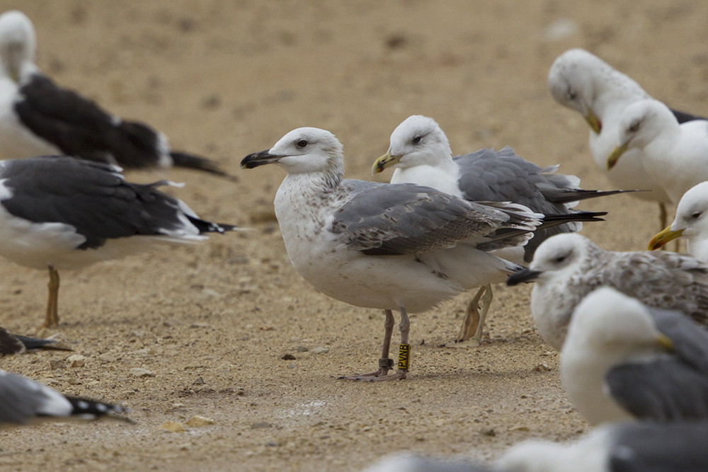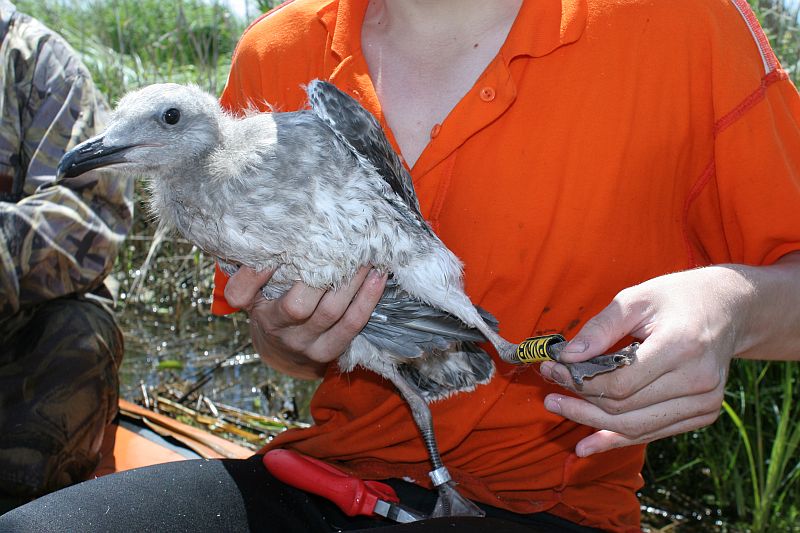 Larus cachinnans? 1CY & 2CY PVNB June 2011 & December 2012, Russia & Israel. Picture: Larisa Plusnina & Amir Ben Dov. rings: metal Moskwa C-525124 + yellow PVNB (black inscription) Distance travelled is 2562.4 km, direction 202.6 deg (almost perfectly south). See also PVPS. below: cachinnans? 2cy PVNB December 21 2012, Ashdod, Israel. Picture: Amir Ben Dov. Many inner coverts and upper tertials replaced in partial autumn moult, now almost plain grey. Small mirror on P10. below: cachinnans? 1cy PVNB June 18 2011, Selitba Lake, Penza oblast, Russia (53°10'11.04"N, 46°50'9.84"E). Picture: Larisa Plusnina. Chick. The colony is in reeds at a shallow lake in the forest-steppe zone, and is a mixed one. That is, cachinnans and barabensis-type gulls are the two taxa which breed there, at times in mixed pairs and some intermediate types are also present. Here you can have a look at adults from there. Probably heuglini does not breed this far south (tundra breeding species), though few birds were nearly as dark as heuglini (clearly darker than baraba's from SW Siberia). When the chicka are ringed, several alrming adults fly overhead, but it is impossible to tell which is the parents, and therefore which taxon the pullus belongs to. Observations from ringed birds, once they are adult, should confirm taxon. Shallow lake near Kuznetsk, Penza Oblast, between Moskwa and River Volga. |