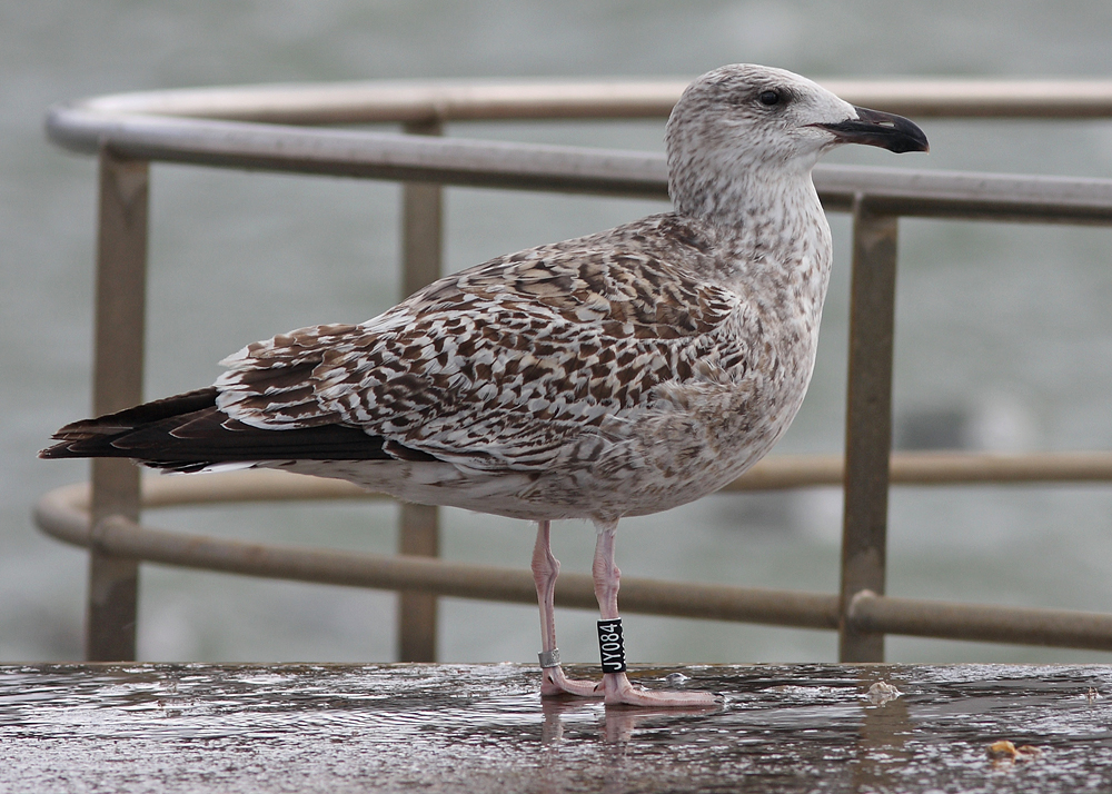 Great Black-backed Gull (marinus) 1cy JY084 November 04 2012, Boulogne-sur-Mer, NW France. Picture: Jean-Michel Sauvage.Ringed as pullus on 28 June 2012 at Storeholm W, Hirsholmene, Frederikshavn, Nordjylland, Denmark (57°29'28"N 010°36'16"E). History: Several scapulars replaced. Tertials and coverts juvenile. |