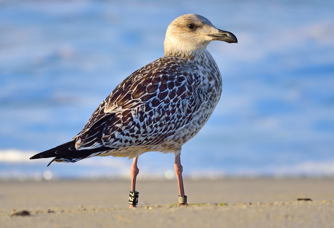 Great Black-backed Gull (L. marinus) 7Z1 1st cycle (1CY), September 04 2015, High Head, North Truro, Barnstable County, Massachusetts. Picture: Steve Arena.Please visit Steve's Flick photostream excellent website for many more images! Banded as pullus on July 13 2015, at Appledore Island, York County, Maine USA. For more info about this project, see The Gulls Of Appledore blog. Completely juvenile plumage. |