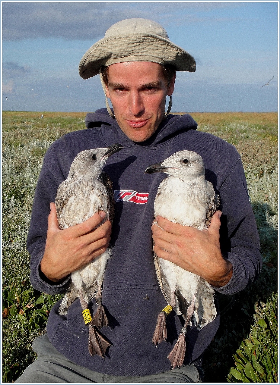 Great Black-backed Gull (Larus marinus) H15T & H16T 1cy, June 29 2009, Hallig Norderoog / Kreis NF, Germany (54.32N 8.31E).H16T was recorded at Boulogne-sur-Mer by Jean-Michel Sauvage, on November 09 2010. Mantelmöwe Larus marinus Photographie de Matthias avec H16T à droite. |