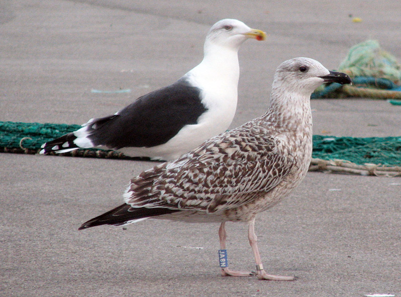 Great Black-backed Gull (Larus marinus) JA8N 1cy: November 10 2006, Boulogne sur Mer, France (50.44 N - 01.35 E). Picture Jean-Michel Sauvage.Ringed in S Norway. CR-Code Blue with white code JA8N Ringing Centre Ringing Centre Stavanger Ringnumber 3006338 10.11.2006 Boulogne-sur-Mer, Pas-de-Calais, FRANCE 50.43 N - 01.37 E Jean Michel Sauvage 146