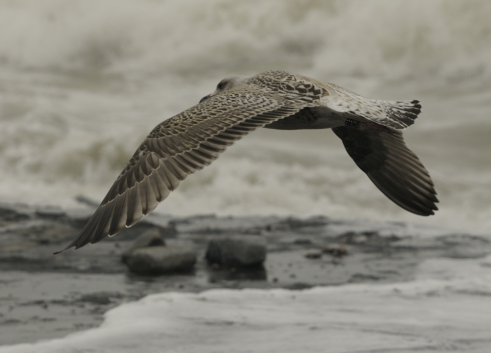 Great Black-backed Gull (L. marinus) JH272 1cy, August 26 2010, Westkapelle, The Netherlands. Picture Ies Meulmeester & Theo Muusse.