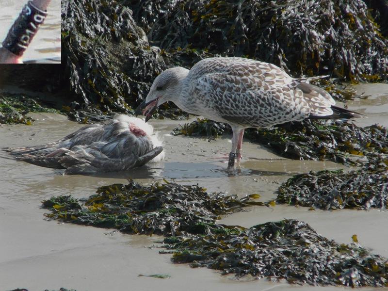 Great Black-backed Gull (Larus marinus) JP149 1cy, September 18 2011, IJmuiden, The Netherlands. Picture: Jan Zorgdrager.