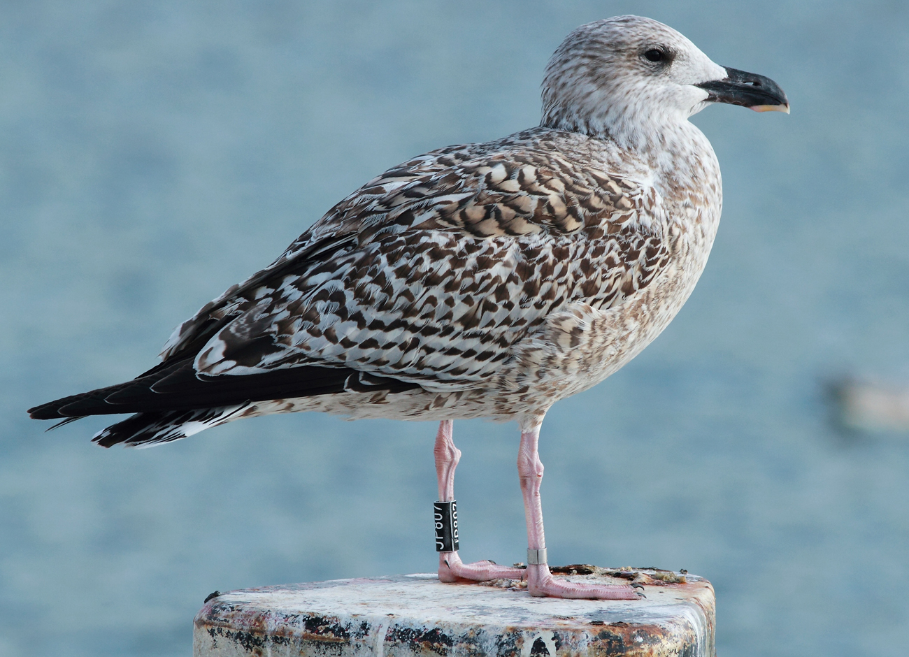 Great Black-backed Gull (Larus marinus) JP807 1CY, November 03 2016, Boulogne sur Mer, France (50.44 N - 01.35 E). Picture Jean-Michel Sauvage.Ringed as pullus on July 05 2016 at Herreholmen, Lyngdal, Vest-Agder, Norway. US: 75-99%, LS: 50-75%, TOTSCAPS: 50-75%. |