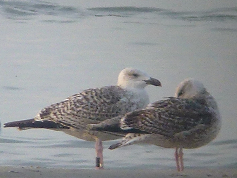 Great Black-backed Gull (Larus marinus) JZ410 1cy: November 22 2014, Hondsbossche Zeewering, the Netherlands. Picture: Caroline Walta.Ringed as pullus on July 01 2014 in Mevraodden, Mandal, Vest-Agder, Norway. US: 75-99%, LS: 25-50%, TOT SCAPS: 50-75%. Tertials and coverts juvenile. |