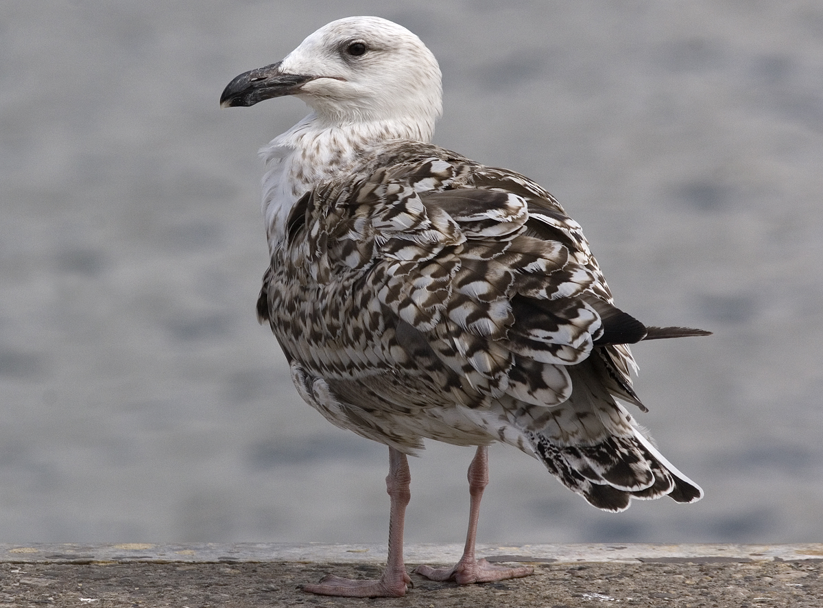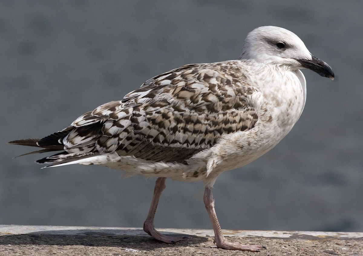 Great Black-backed Gull (Larus marinus) 2CY, July 30 2014, IJmuiden, the Netherlands.Bird in complete moult: P6/P10. All coverts replaced for 2nd gen feathers (except maybe some very small lesser coverts in the carpal edge). Active moult in tail: central rectrices replaced, several growing. |