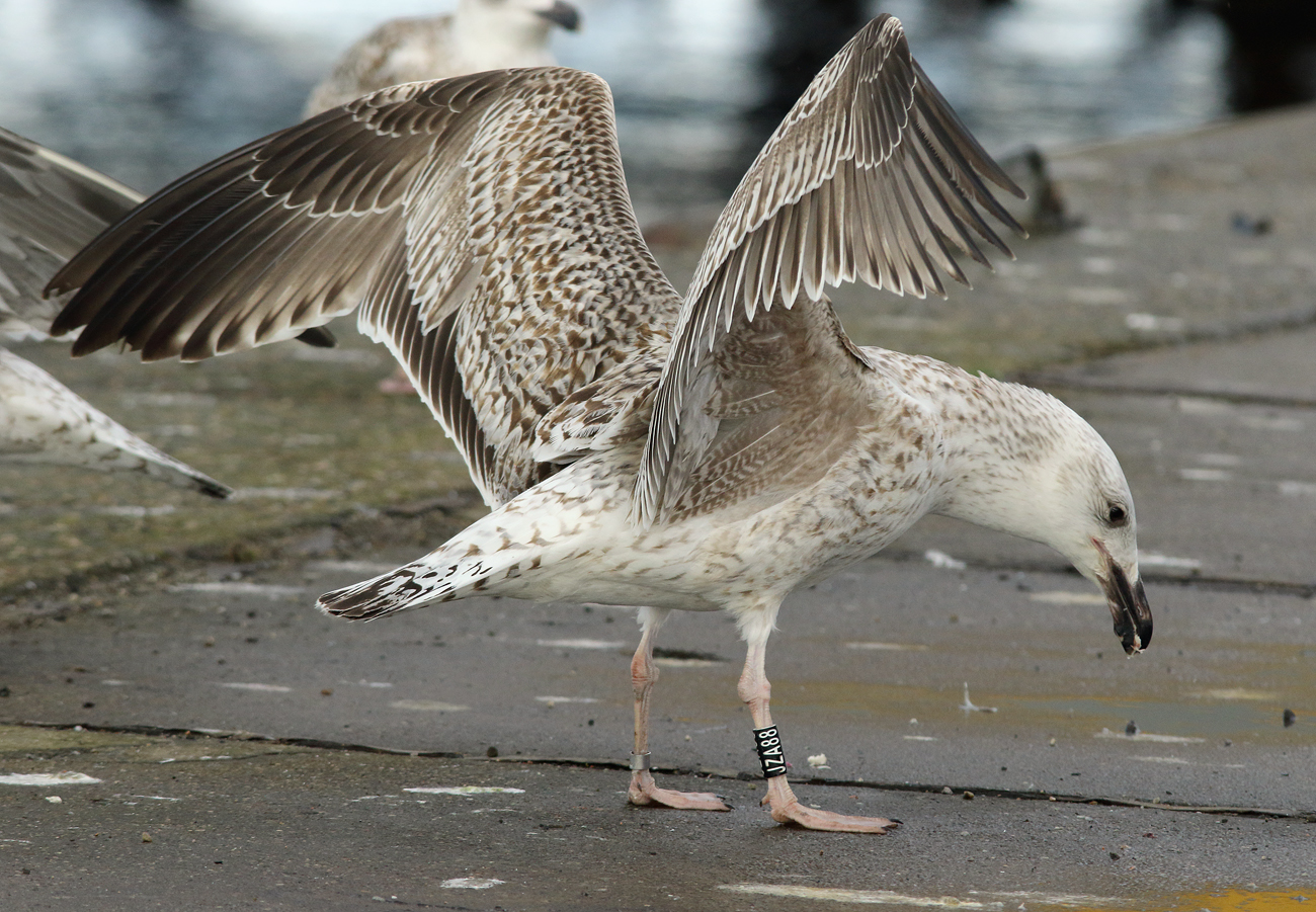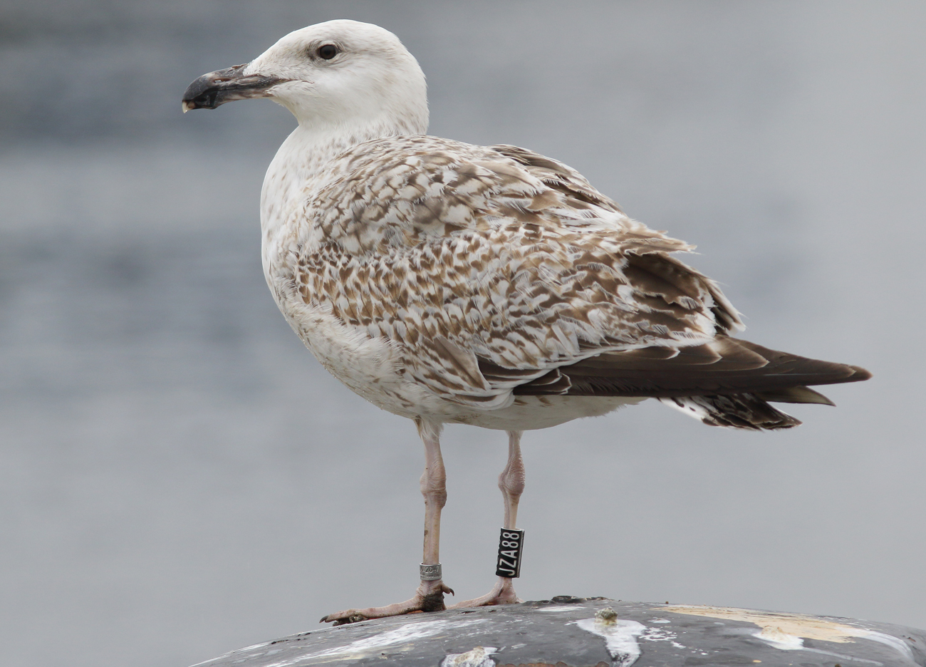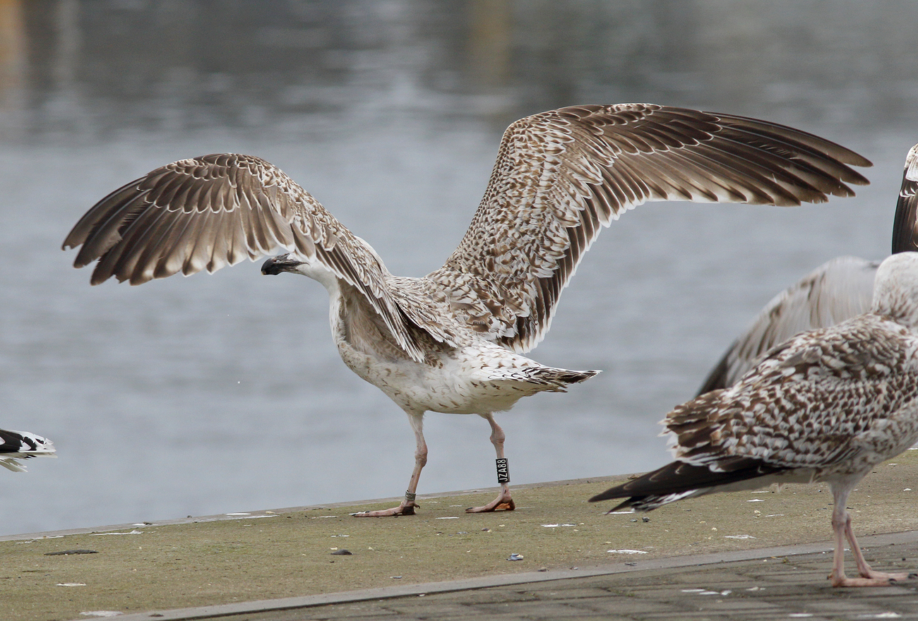 Great Black-backed Gull (Larus marinus) JZA88 1st cycle (2CY), February 19 - March 21 2016, IJmuiden, the Netherlands.