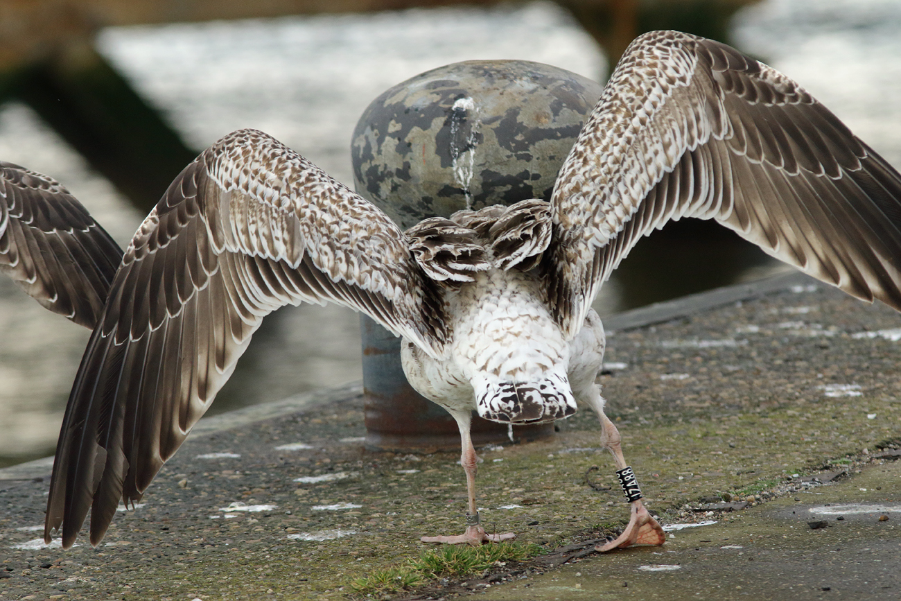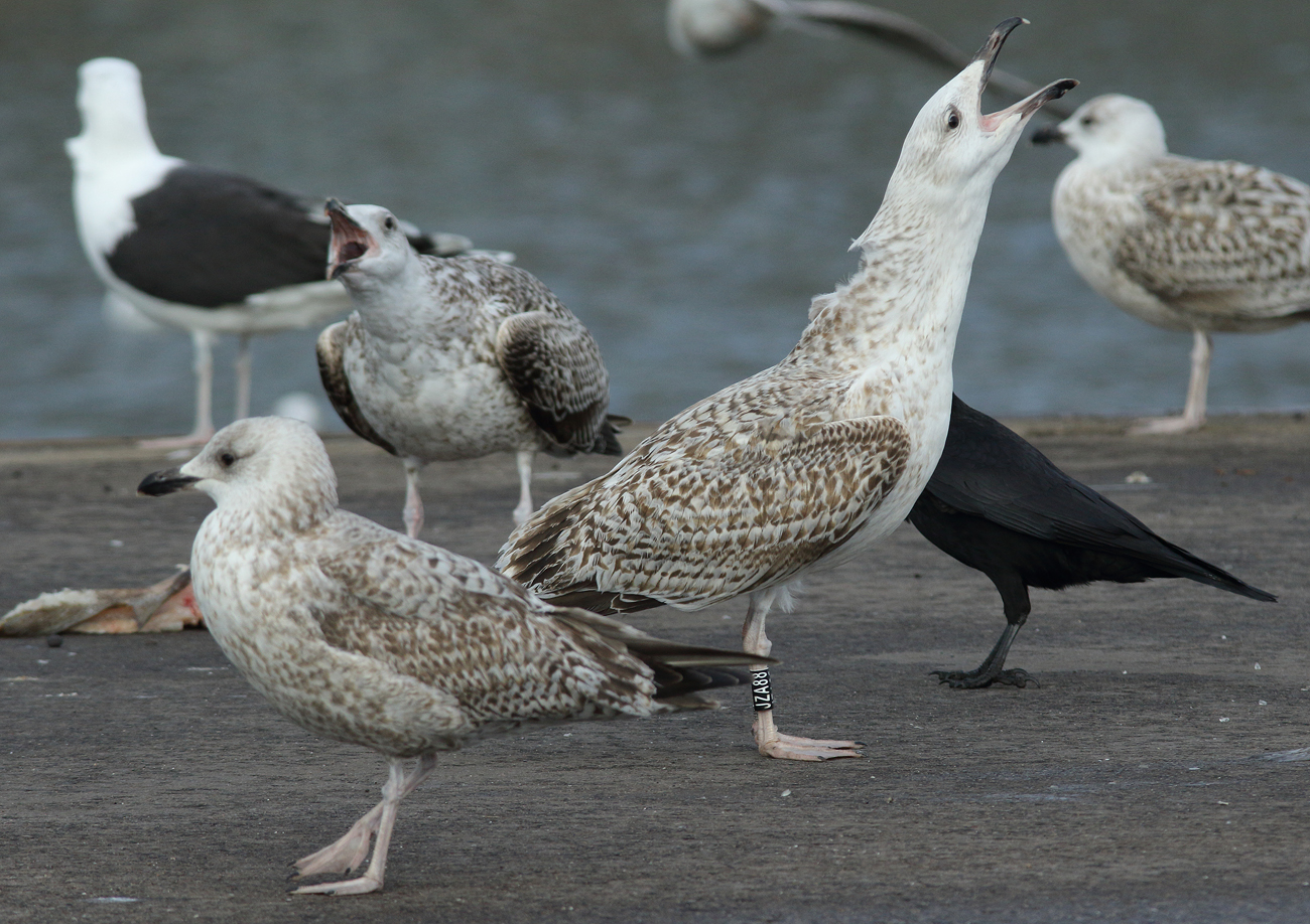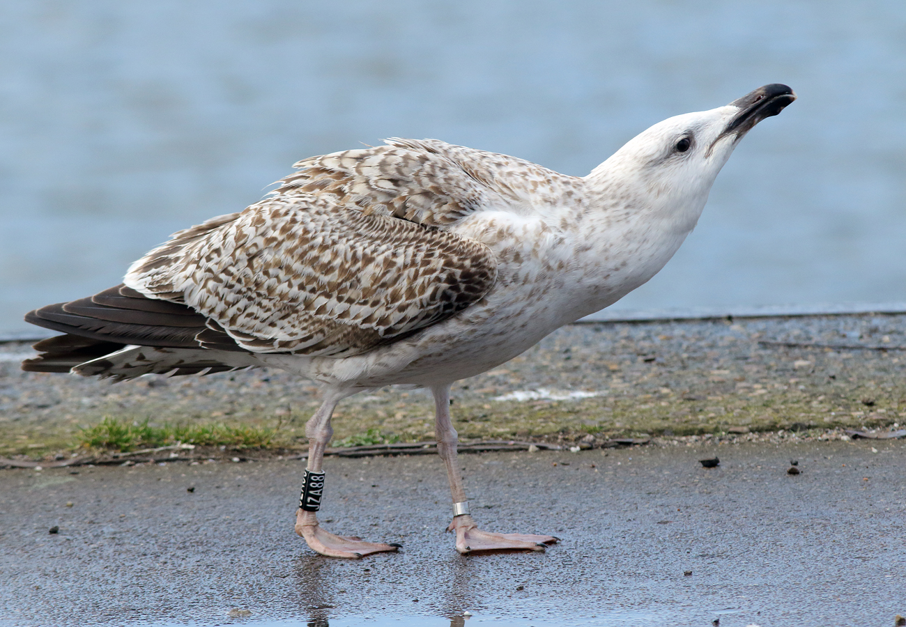 Great Black-backed Gull (Larus marinus) JZA88 1st cycle (2CY), February 19 - March 21 2016, IJmuiden, the Netherlands.