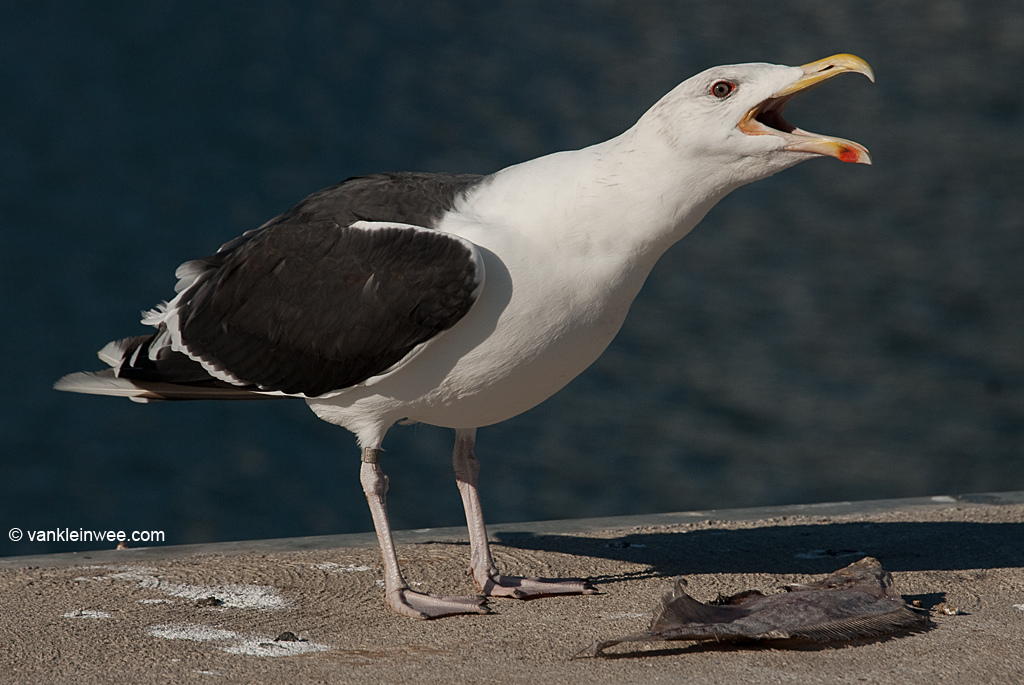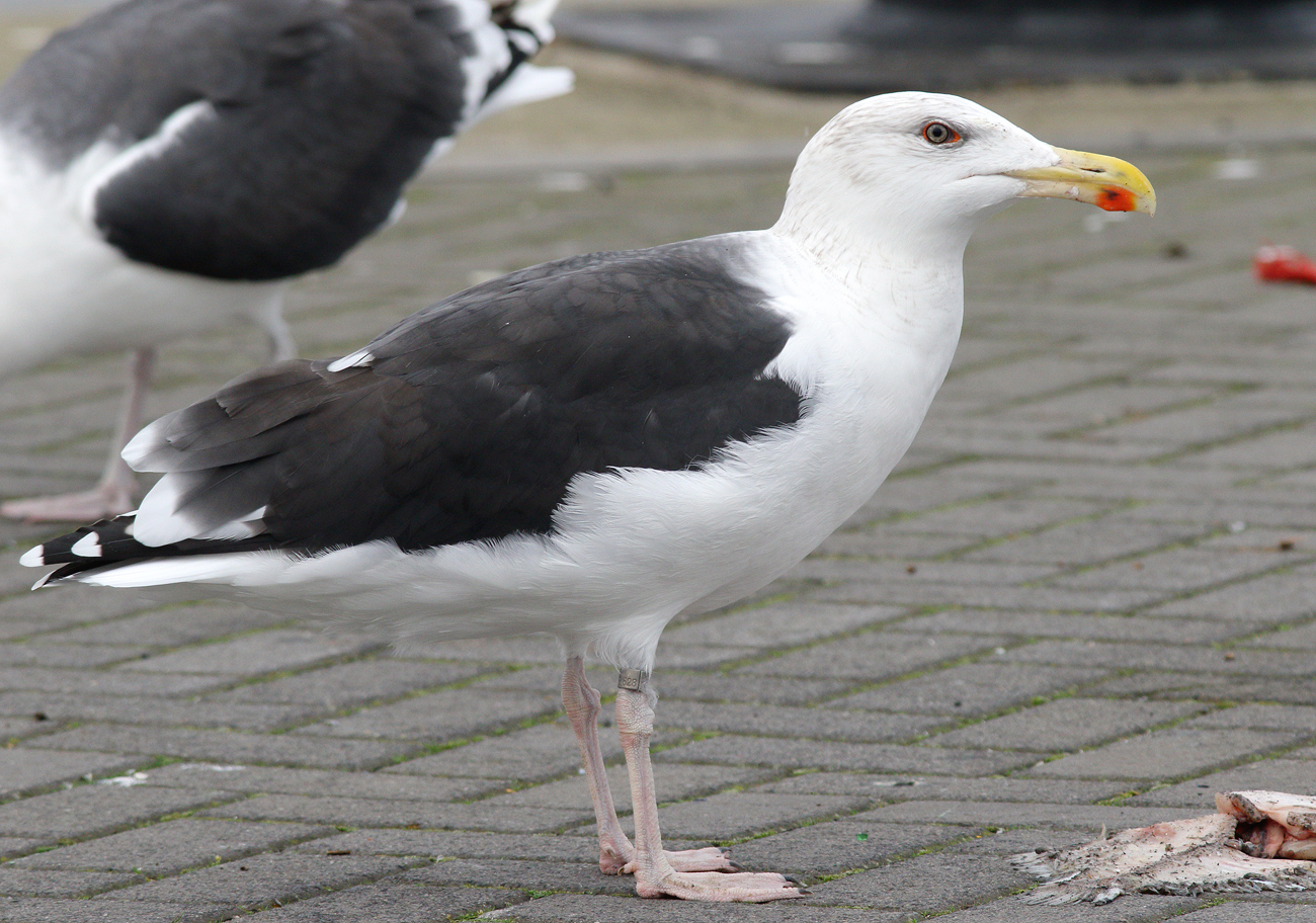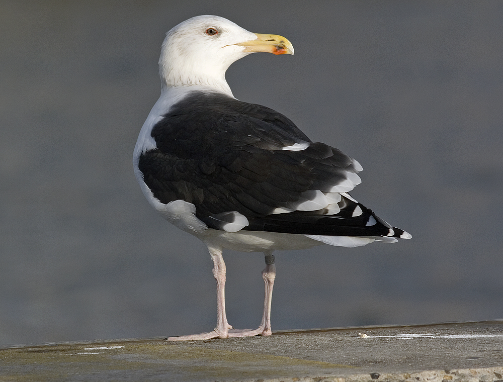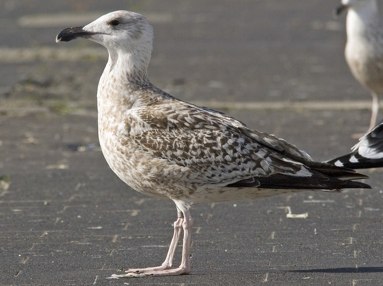 Great Black-backed Gull (Larus marinus) NLA 6.038.628 March 2007, October 2011 & October-December 2015, IJmuiden, the Netherlands.Ringed as 1cy metal tibia NLA 6.038.628, on October 08 2006 at IJmuiden, the Netherlands by Frank Majoor. No provenance on origin. below: 2cy VTO 6.038.628 March 05 2007, IJmuiden. A Dutch ringed bird with almost all scapulars 2nd generation. below: Stef Waasdorp. below: 5cy VTO 6.038.628 October 16 2011, IJmuiden. Picture: Maarten van Kleinwee. Intimidating adult. Moult: P7 / P10; S2. below: 6cy VTO 6.038.628 January 13 2012, IJmuiden, the Netherlands. below: 10cy VTO 6.038.628 October 29 2015, IJmuiden, the Netherlands. P7 fully grown. below: 10cy VTO 6.038.628 December 03 2015, IJmuiden, the Netherlands. P8 fully grown, P9>P7, P10=P5. PMS=47. |