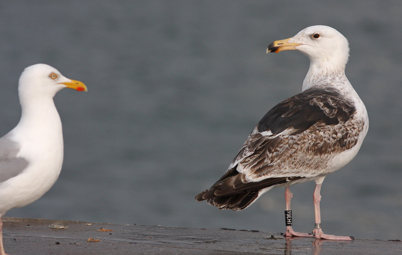 Great Black-backed Gull (Larus marinus) JH364 3CY & 7CY, May 2012 & October 2016, Boulogne sur Mer, France (50.44 N - 01.35 E). Picture Jean-Michel Sauvage.