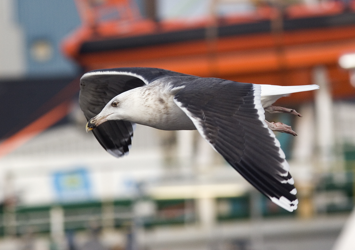 Great Black-backed Gull (Larus marinus) 4th cycle (4CY), December 20 2014, IJmuiden, the Netherlands.In general very adult like birds, often with single brown coverts (best seen on underwing as the upperwing is almost equally dark) and most immature birds have pinkish bill with obvious broad bill band. Immature birds have a tendency to develop a little more streaking on head and breast than adults do. |