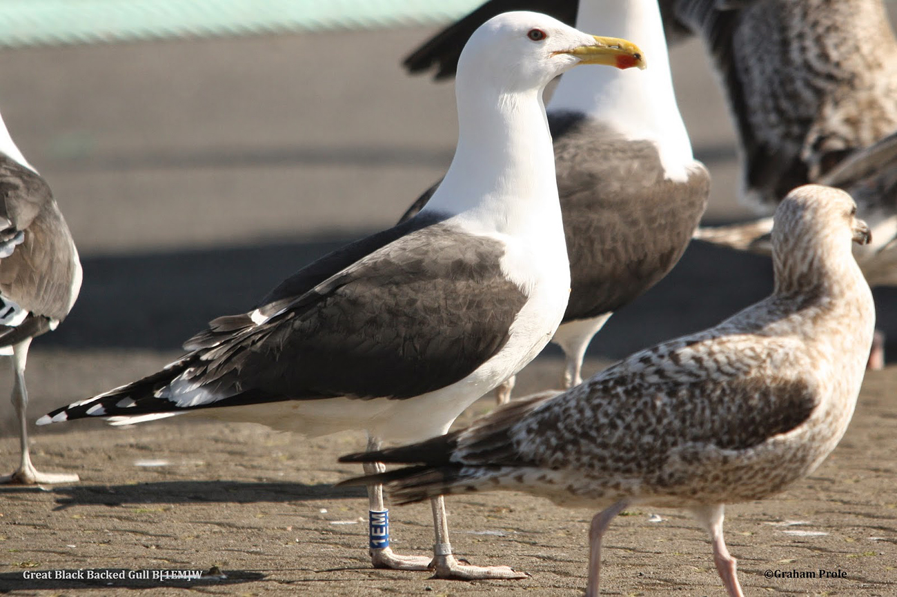 below: Great Black-backed Gull (Larus marinus) 1EM 6CY, April 09 2015, Howth Harbour, Ireland. Picture: Graham Prole.