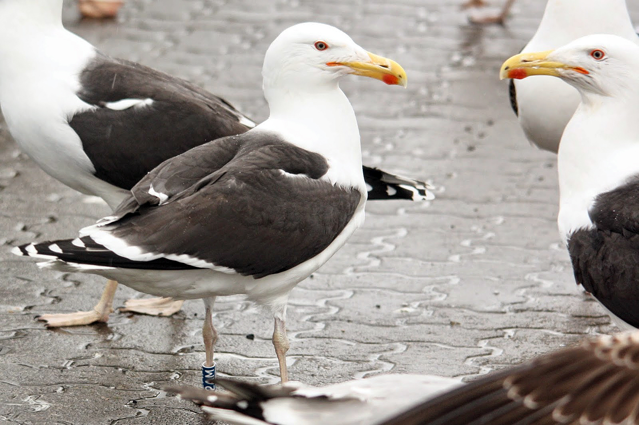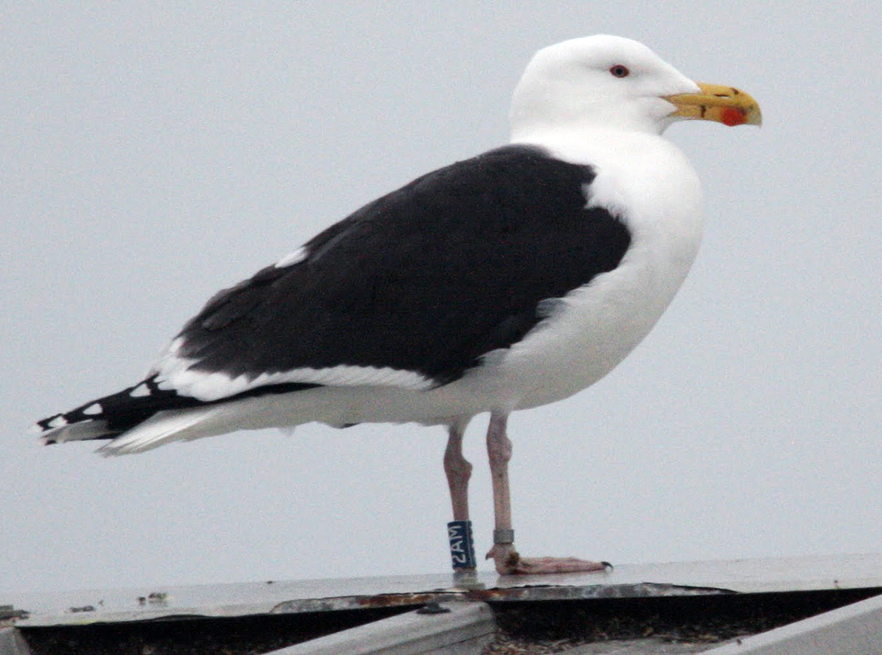 Great Black-backed Gull (Larus marinus) 2AM 6CY-7CY, March 2014 & May 2015, Howth, Ireland. Picture: Graham Prole.Visit Graham's blog! Ringed on island Irelands Eye, near Dublin, summer 2009. Great Black-backed Gull (Larus marinus) 2AM 7CY, May 02 2015, Howth, Ireland. Picture: Graham Prole.On fish left-overs from the industry. ![]() Great Black-backed Gull (Larus marinus) 2AM 6CY, March 30 2014, Howth, Ireland. Picture: Graham Prole.Adult in breeding plumage.below: island Irelands Eye, near Dublin. |