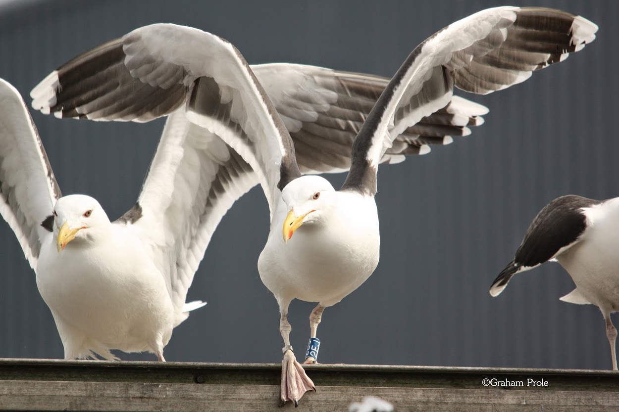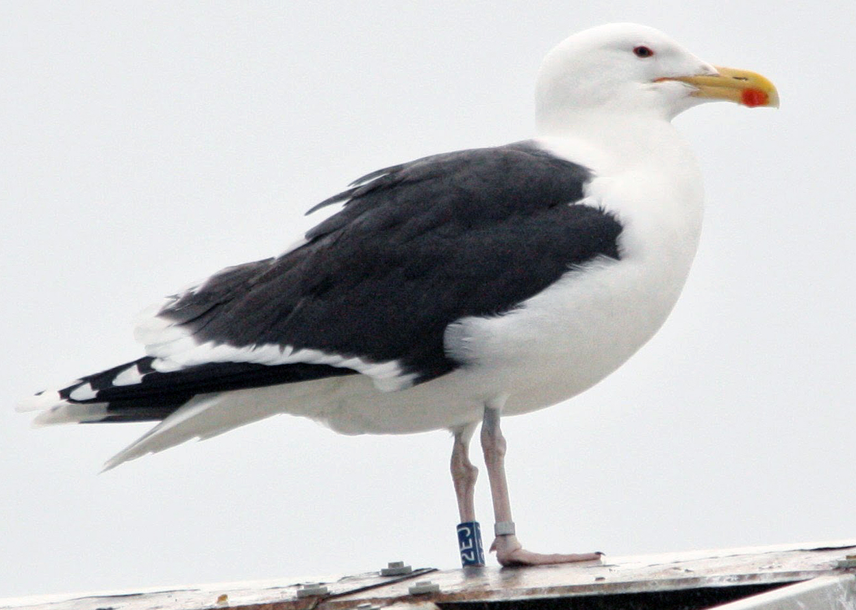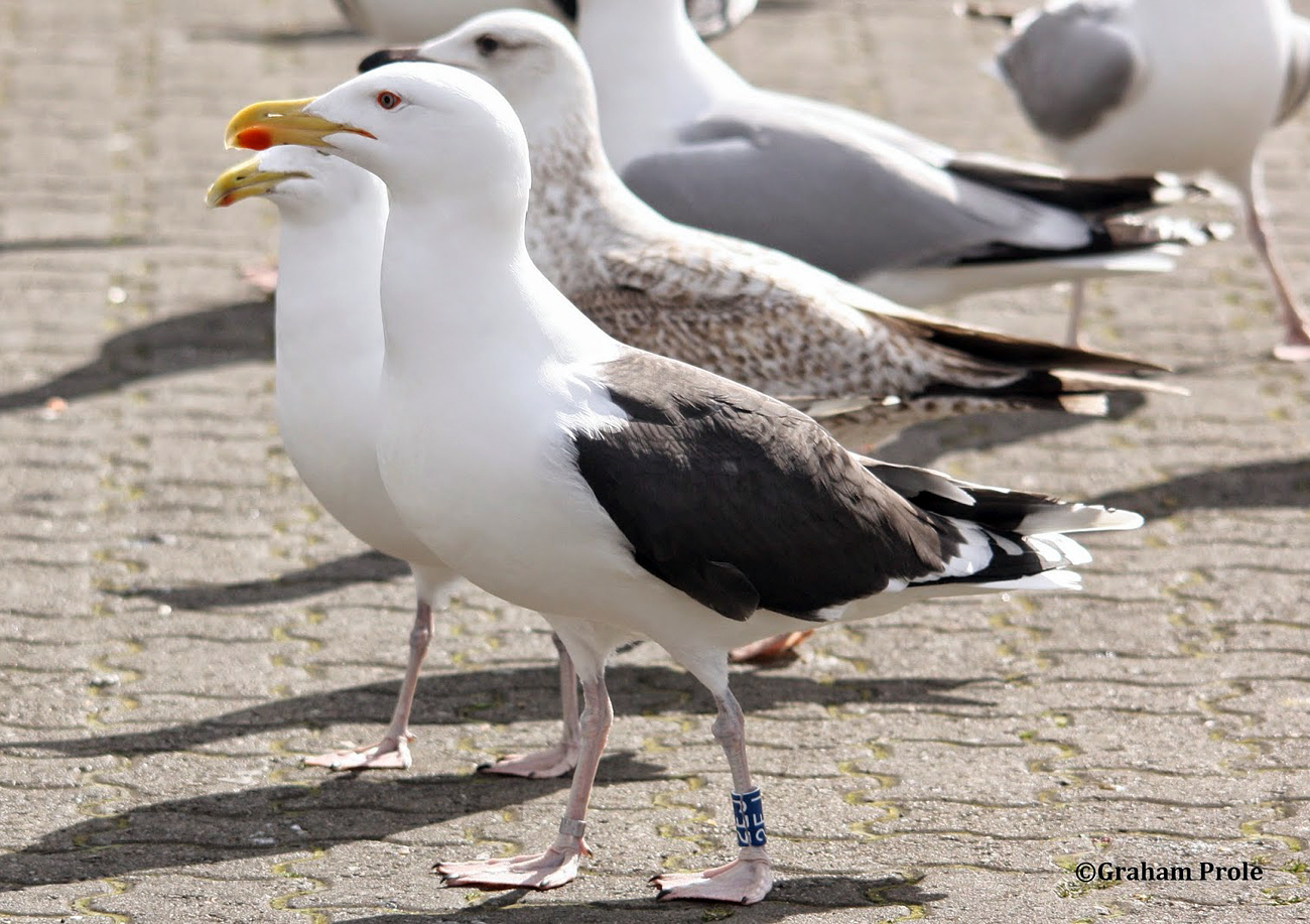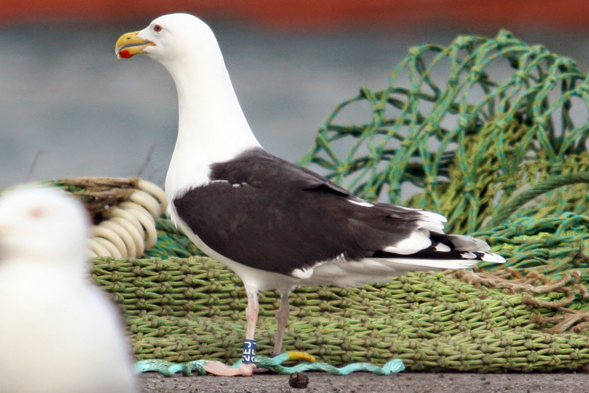 Great Black-backed Gull (Larus marinus) 2EJ 6CY-7CY, March-May 2014 & March-April 2015, Howth, Ireland. Picture: Graham Prole.Visit Graham's blog! Ringed on island Irelands Eye, near Dublin, summer 2009. below: Great Black-backed Gull (Larus marinus) 2EJ 7CY, April 11 2015, Howth, Ireland. Picture: Graham Prole. below: Great Black-backed Gull (Larus marinus) 2EJ 7CY, March 07 2015, Howth, Ireland. Picture: Graham Prole. below: Great Black-backed Gull (Larus marinus) 2EJ 6CY, May 15 2014, Howth, Ireland. Picture: Graham Prole. Complete moult started: inner primary P1 dropped. below: Great Black-backed Gull (Larus marinus) 2EJ 6CY, March 30 2014, Howth, Ireland. Picture: Graham Prole. below: island Irelands Eye, near Dublin. |