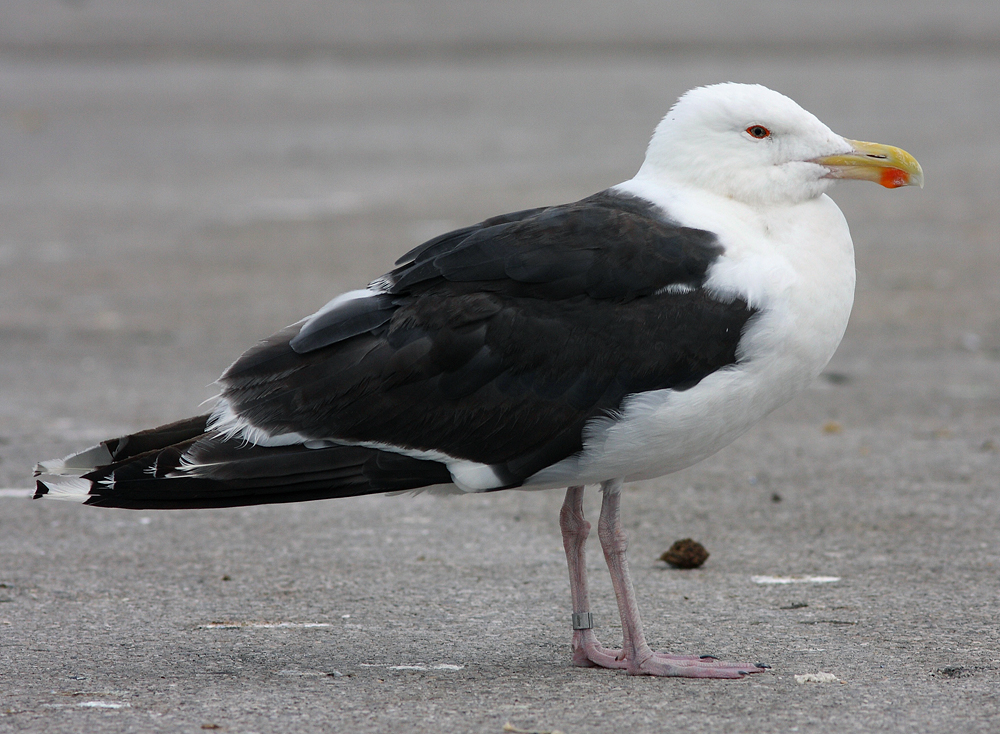 Great Black-backed Gull (Larus marinus) NOS 384055 16cy, August 26 2012, Boulogne sur Mer, France (50.44 N - 01.35 E). Picture Jean-Michel Sauvage.Bird ringed as pullus at Stalen, Mandal; Norway (58.00N--07.40E), ringed on June 22 1997. P4 fully grown, P7-P10 old. |