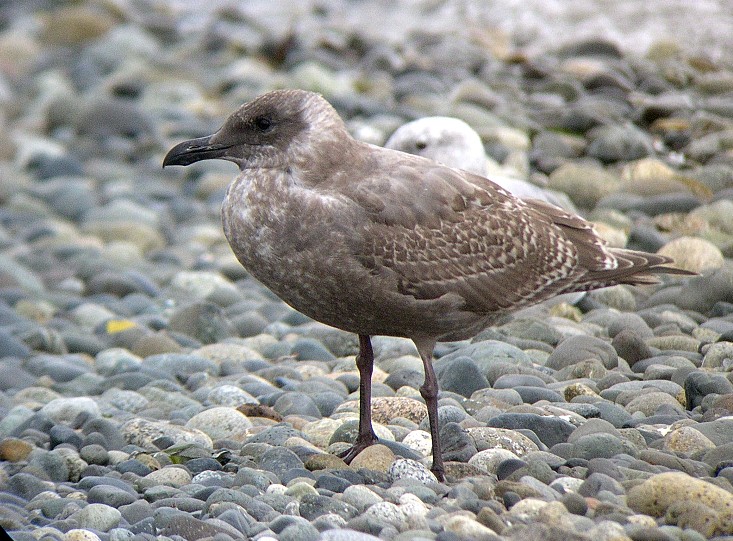 Olympic Gull occidentalis x glaucescens 1st cycle (1CY) hybrid, October 15 2006, Vancouver Island, BC. Picture: Guy Monty.