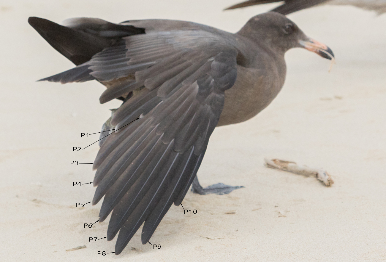- And a new moult wave in the inner primaries with P1 growing and P2 just visible.