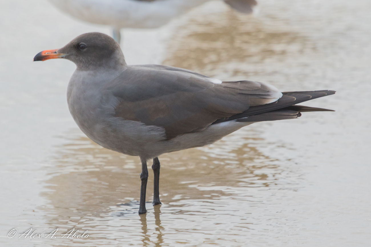 Heermann's Gull heermannii 2nd cycle (2CY), November 21 2018, San Luis Obispo, California USA. Picture: Alex Abela.See Alex's Flickr site for many more images, illustrating the plumage development in this species! Overall brown aspect to plumage, except for those wing-coverts and upper tertials that were included in a late-summer partial autumn moult and appear greyish.