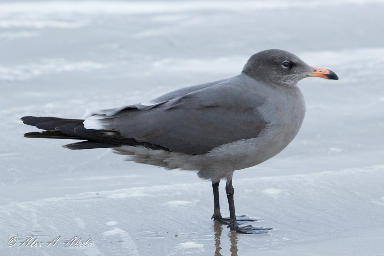 Heermann's Gull heermannii 2nd cycle (2CY), November 18 2018, Pismo Beach, California USA. Picture: Alex Abela.See Alex's Flickr site for many more images, illustrating the plumage development in this species! Overall greyish bird, due to extensive moult. Still, primaries without white tips and no white tips on tail-feathers indicate these are 2nd gen flight feathers.