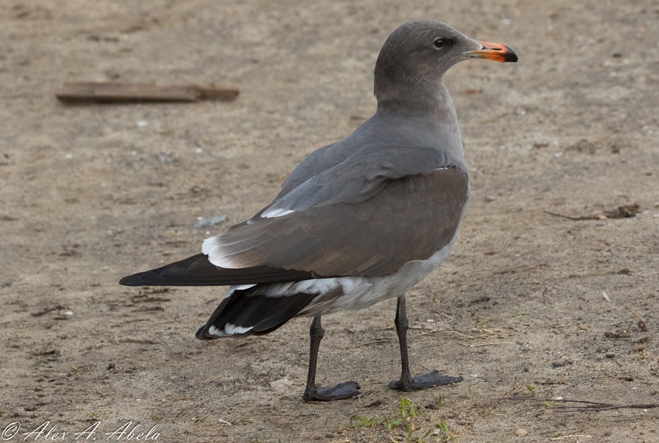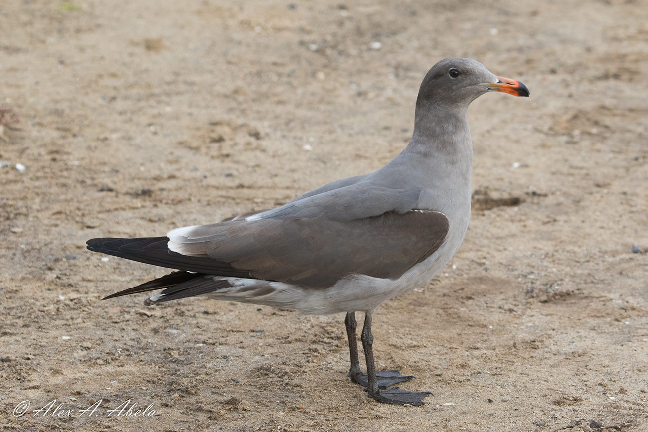 Heermann's Gull heermannii 2nd cycle (3CY), January 11 2019, Santa Barbara, California USA. Picture: Alex Abela.See Alex's Flickr site for many more images, illustrating the plumage development in this species. Dark brown 2nd gen primaries (without obvious white tips). Lower tertials, central Gc and coverts in carpal edge often pale brown. Head with dense brown pattern.