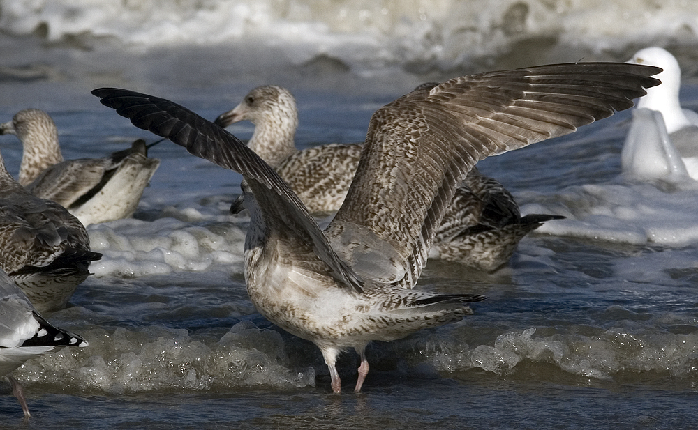 Showing upperwing pattern. Few adult-like grey feathers.