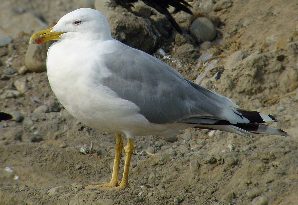 to the outer-web, with sharply defined edges. The iris is clearly yellow in summer in most argentatus, but some sub-adult argentatus will keep the iris amber to dark brown. |