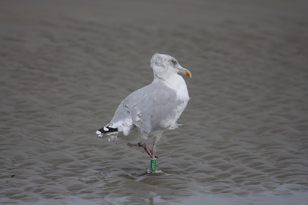 below: Herring Gull (argenteus) Y.AAK adult, October 11 2009, Koksijde, Belgium. Picture: Peter Adriaens.