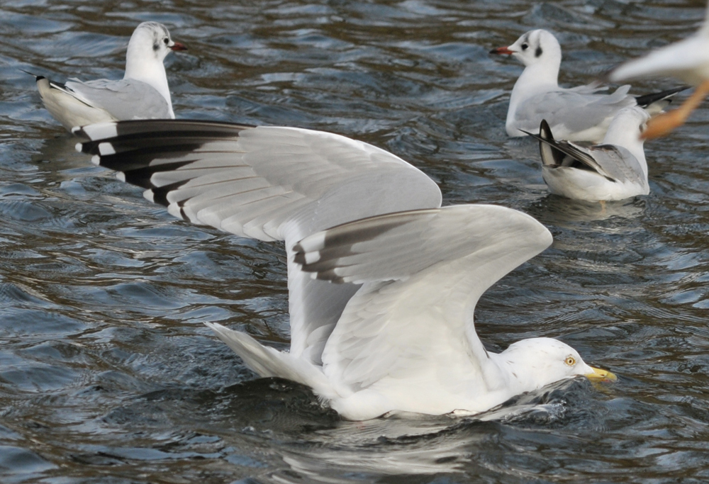 Herring Gull (argenteus) RR 6CY, January 29 2014, Dordrecht, the Netherlands. Picture: Theo Muusse.Full sub-terminal band on P10. Mirror on P9 only on innerweb. P7 & P6 with pattern close to bayonet shape. W-shape on P5.