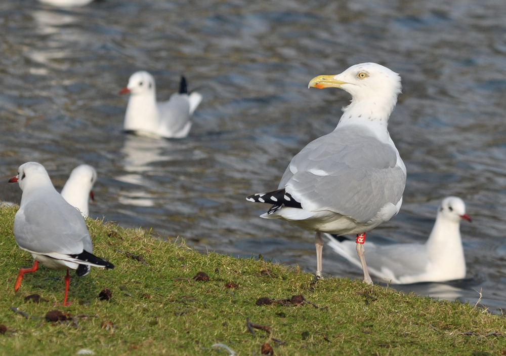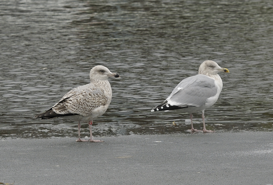 Herring Gull (argenteus) RR 2CY & 6CY, November 2010 & January 2014, Dordrecht, the Netherlands.Bird ringed in SW Netherlands, by Roland-Jan Buijs, probably pullus Moerdijk 2009. below: Herring Gull (argenteus) RR 2CY November 30 2010, Dordrecht, the Netherlands. Picture: Theo Muusse.Complete moult finished, feathers replaced again in the partial autumn moult have 2nd gen like patterns.