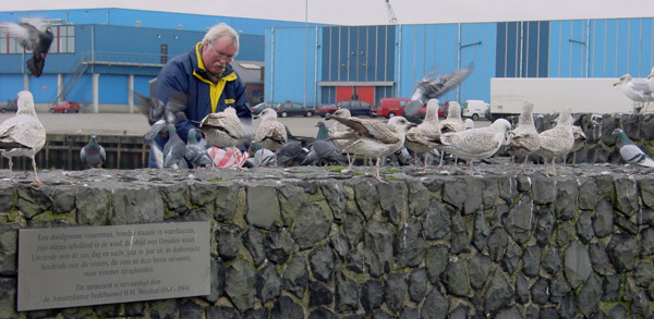 IJmuiden harbour. Local Dutch argenteus gathering with pigeons.