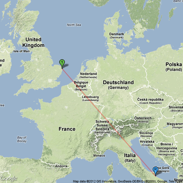 Great Yarmouth: 52°36'N 1°44'E (Norfolk) 1,649km NW 4y 7m 4d (Map) |